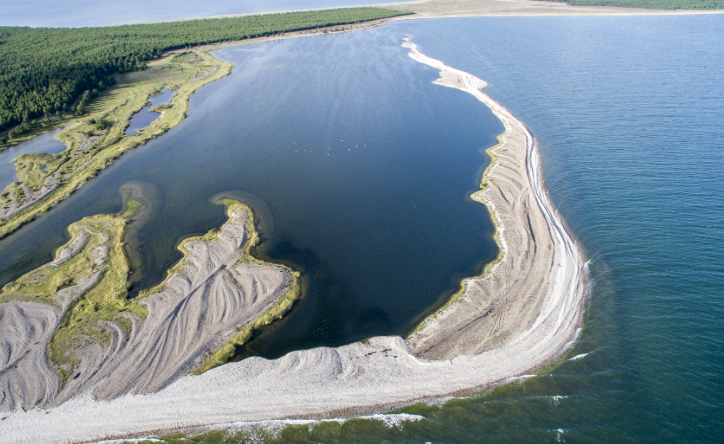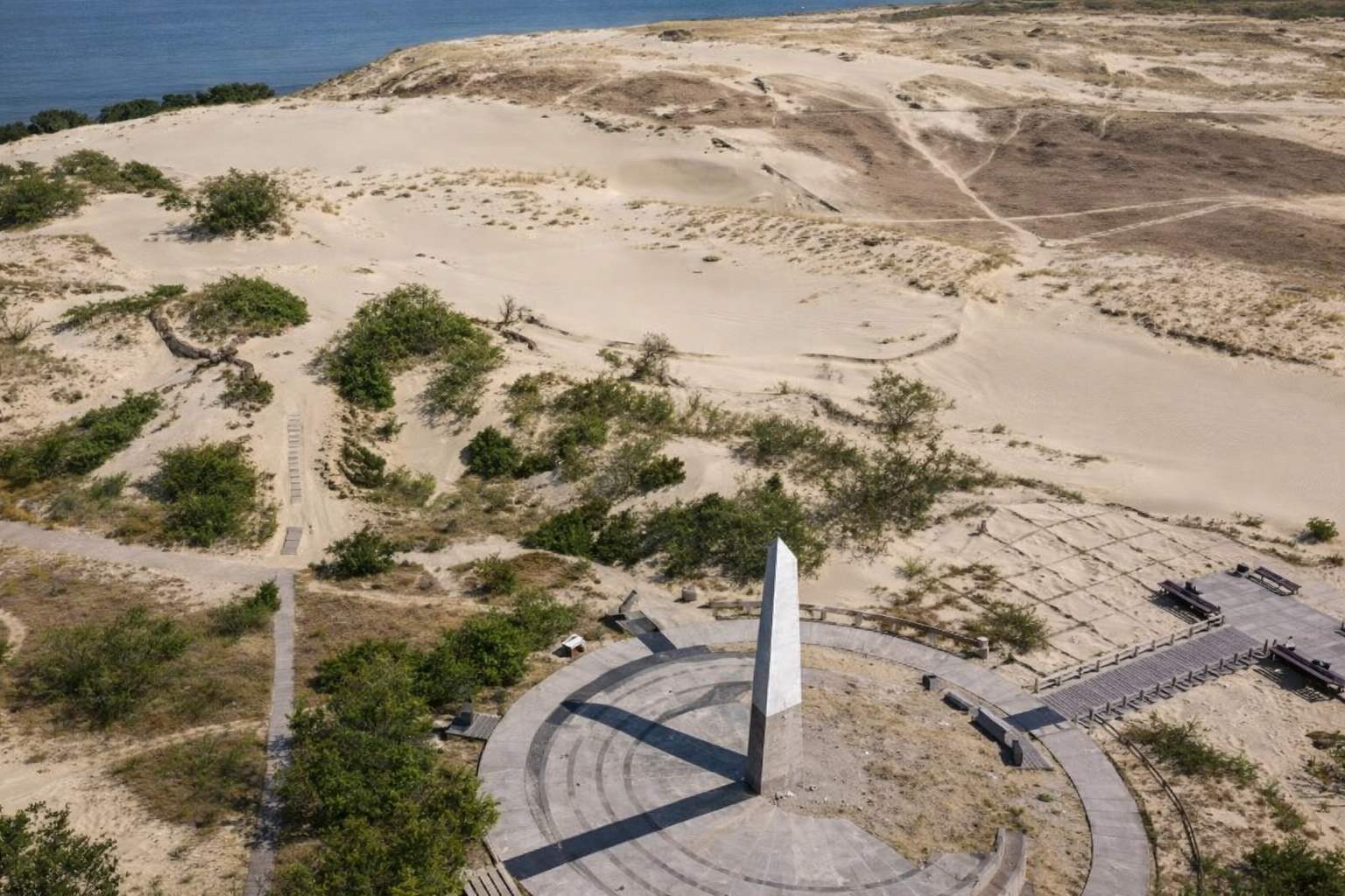 The Curonian Spit is a long, thin sand bar, dotted with dunes, that separates the Curonian Lagoon from the Baltic Sea. This spit is shared by Lithuania and Kalingrad, Russia's western most oblast.