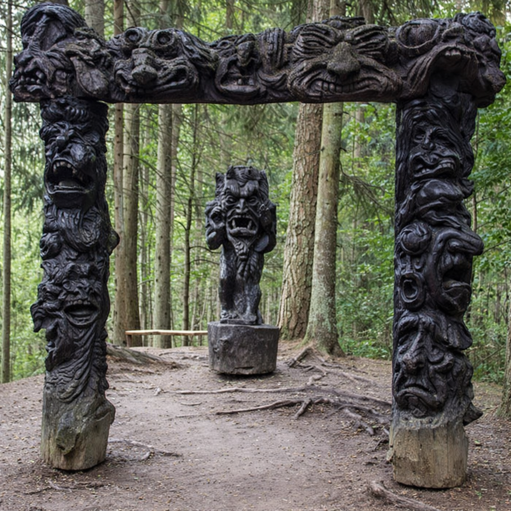The forested hills, known as Hill of Witches used to be the site of dancing and gathering during Pagan festivals. Now, the hills are dotted with wooden statues created by local artists, depicting witches, dragons, and the elements. Some of the statues tell stories of the local legends and folklore, bringing the region to life with their intricate carvings.